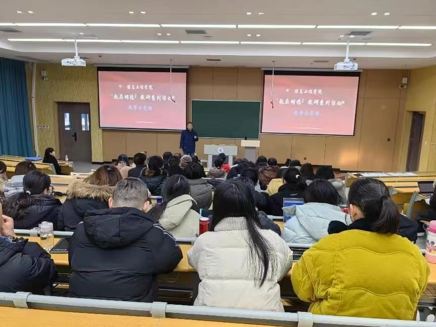 为进一步提高教师的教育教学水平,为教师成长与交流搭建平台,学习先进教学理念,创新教学方法和手段,使用数字化赋能课堂教学创新。2024年1月25日,信息工程学院在7#教学楼101教室举行“教研相依,共向未来”—“教在明德”教研系列活动之教学示范课。信息工程学院院长、副院长、专业负责人、课程负责人及全体教师参加了示范课,活动由范晖副院长主持。