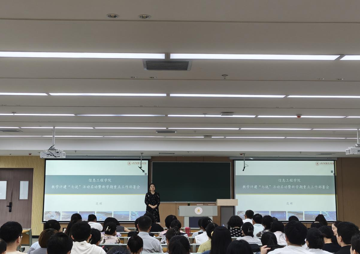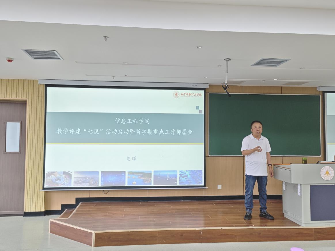 为了深入推进教学评建“七说”活动,凝聚评建共识,提升评建工作质量,确保评建工作有序开展。2025年8月27日上午,信息工程学院召开全体教师会议,开展本科教学合格评估教师“说教学”工作培训展示活动。会议重申了教学评建 “七说” 活动的安排和要求,并开展了“说课程”“说教学” 现场示范,学院相关领导、专业负责人、课程负责人及全体教师参加了会议,会议由学院教学副院长范晖主持。