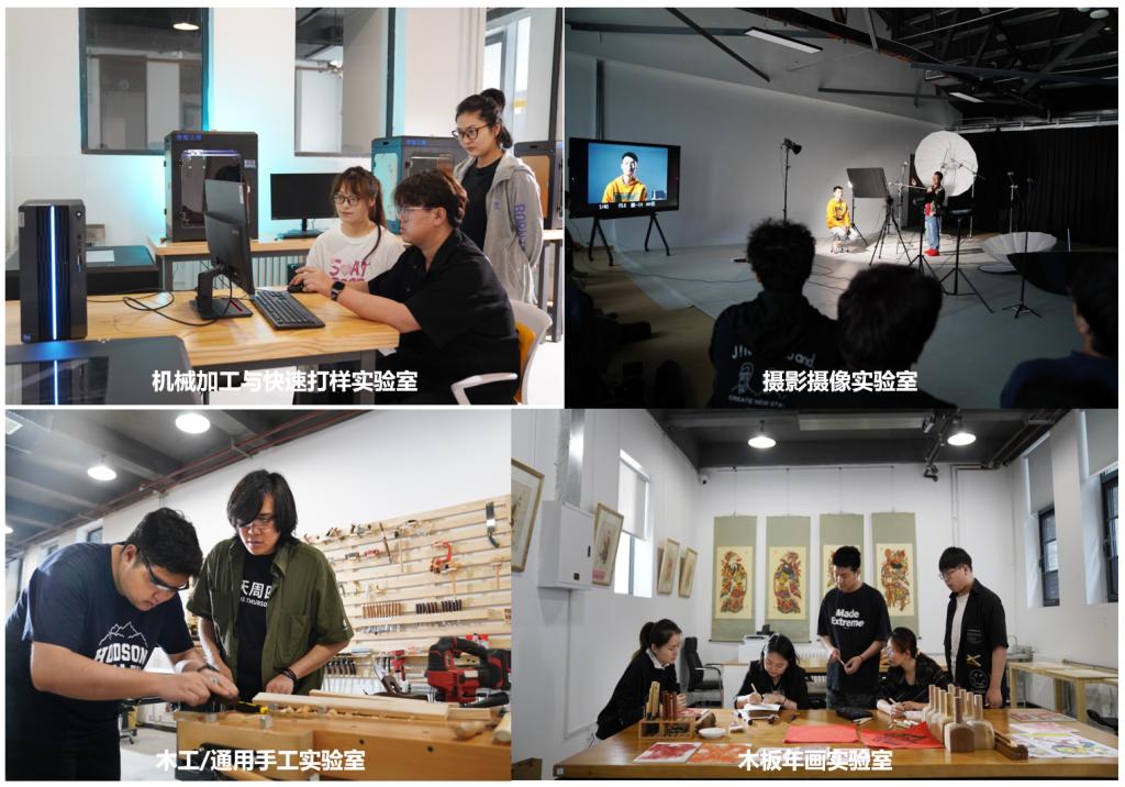 专业配套有木工/通用手工实验室、人机与信息技术实验室、机械加工与快速打样实验室、CMF实验室、油泥实验室、木板年画实验室、丝网印刷实验室、陶瓷艺术实验室、蜡染工艺实验室、纸纤维工艺实验室、数字影像实验室、数字媒体@CAD实验室、摄影摄像实验室等专业实验室,为学生提供实践教学、技能培训、学科竞赛和创新创业的技术支持,全面落实“以实践为中心”的教学理念。