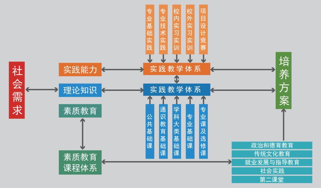 根据社会需求情况及自身的条件,在互联网+、人工智能、大数据的大环境下结合新工科应用型人才培养定位,实现艺术+工科、设计+制造、“学校教育 + 社会教育”交叉融合。