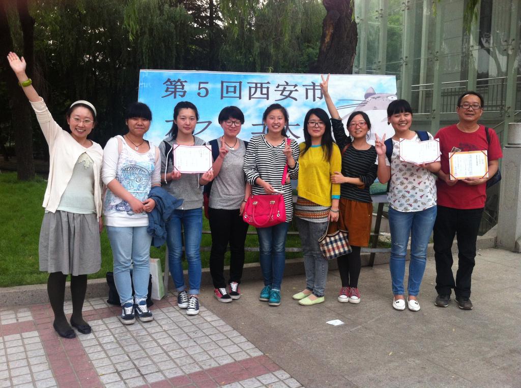 参加陕西省第五届大学生日语配音大赛(左一为日本外教--上枝 惠莉子)